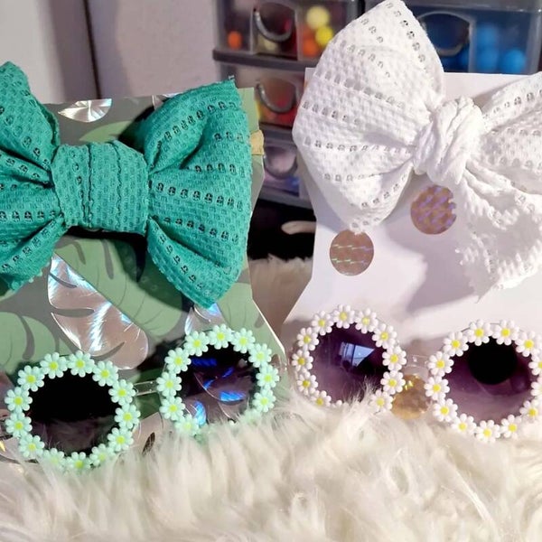 Lunette de soleil fantaisie ronde fleurie turquoise