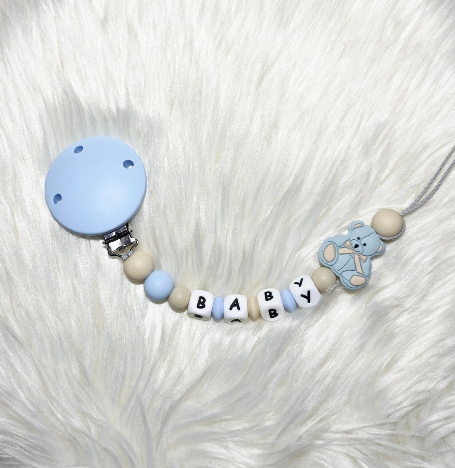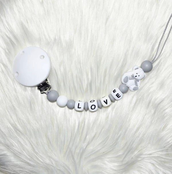 Un joli attache-tétine en silicone alimentaire, doux et sécuritaire, pour garder la tétine de bébé toujours à portée de main. Avec son petit ourson câlin et ses tons tendres, il deviendra vite un indispensable du quotidien.